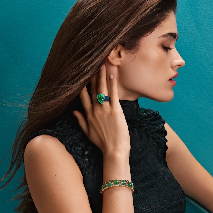 Das „Linea Verde“-Armband ist gearbeitet in 18 Karat Roségold und mit Turmalinen im Smaragdschliff von insgesamt 25,15 Carat besetzt. Die geradlinige Anordnung der Steine verleiht dem Schmuckstück ein klares, architektonisches Design.