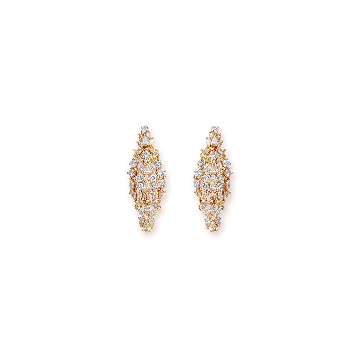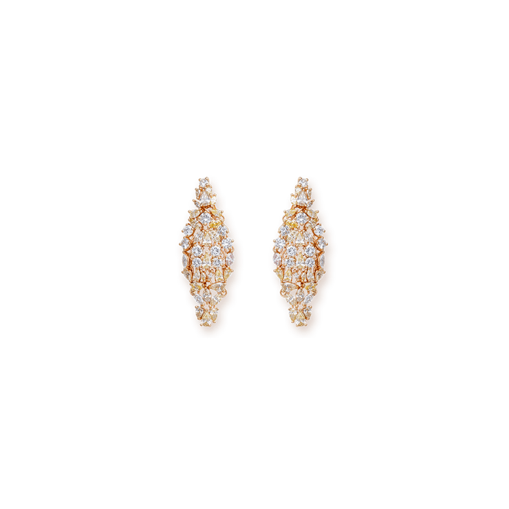 Die "Dorey" Ohrringe sind gearbeitet in 18 Karat Gelbgold und sind besetzt mit gelben Diamanten in diversen Schliffen zu insgesamt 9,12 Carat.
