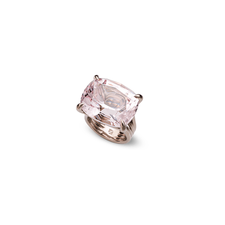 Der "Canistra Lavanda" Ring ist gearbeitet in 18 Karat Weißgold und ist besetzt mit einem Morganit im Cushion-Schliff von insgesamt 32,50 Carat.