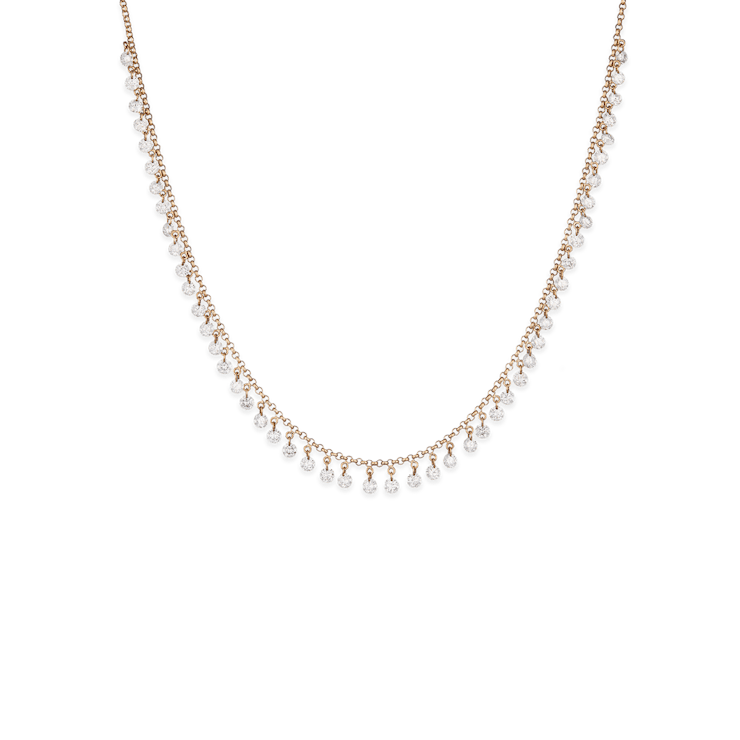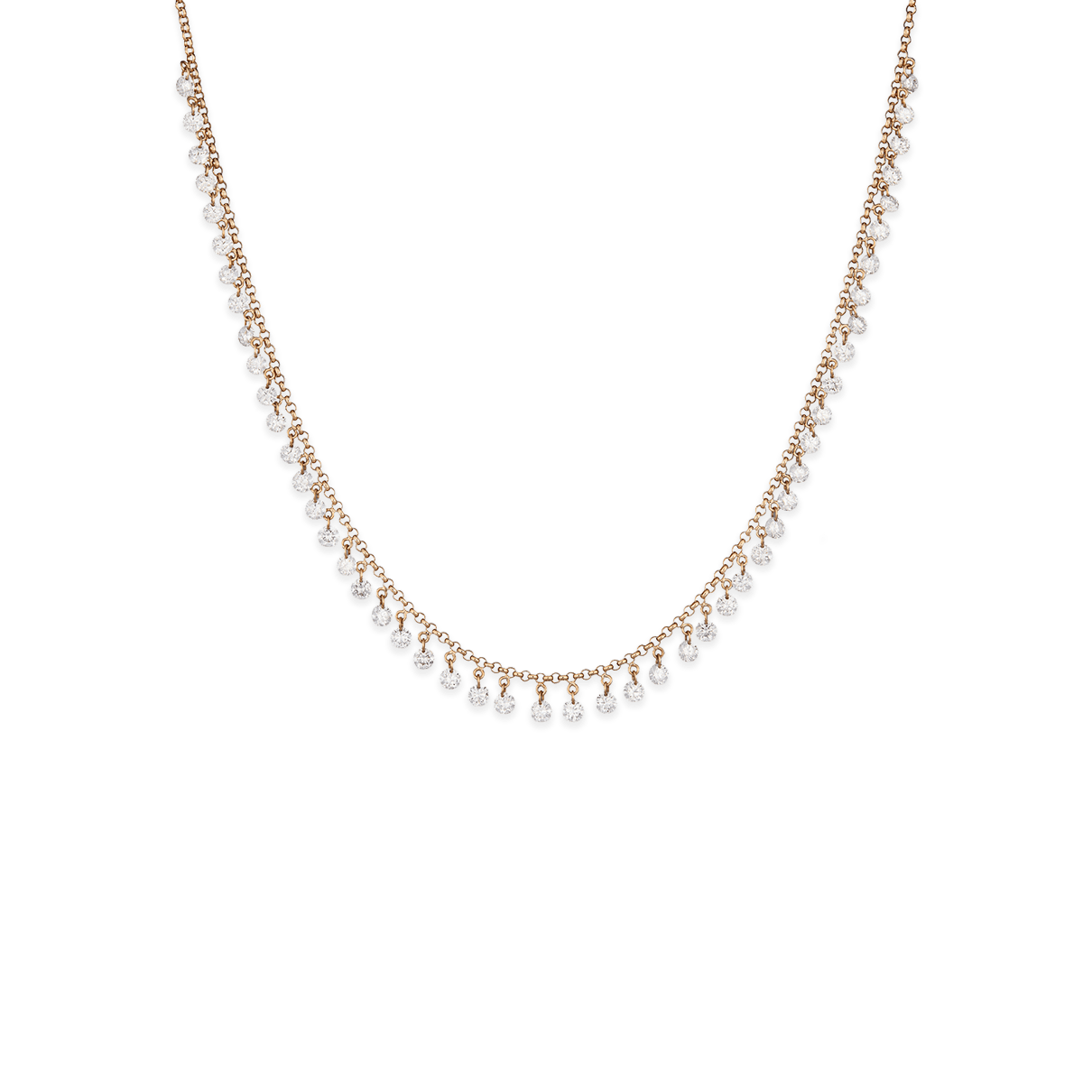 Die "Pioggia" Halskette ist gearbeitet in 18 Karat Roségold und ist besetzt mit Diamanten im Brillant-Schliff zu insgesamt 2,68 Carat.