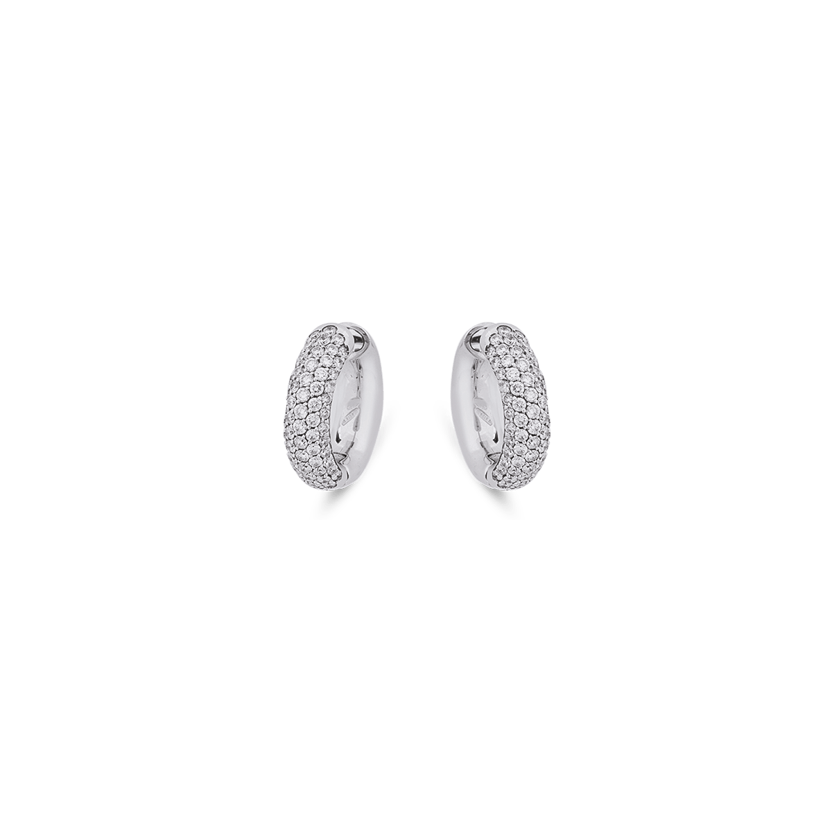 Die "Creo blanc" Ohrringe sind gearbeitet in 18 Karat Weißgold und sind besetzt mit 128 Diamanten im Brillant-Schliff zu insgesamt 1,13 Carat.