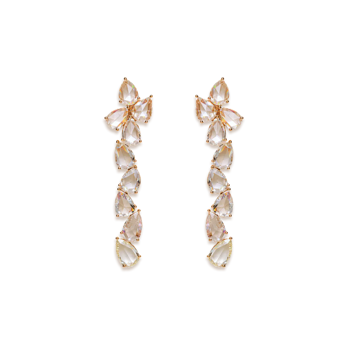 Die „Glacia IV“ Ohrringe sind aus 18 Karat Roségold gefertigt und mit Diamanten im Rosen-Schliff von insgesamt 17,04 Carat besetzt.