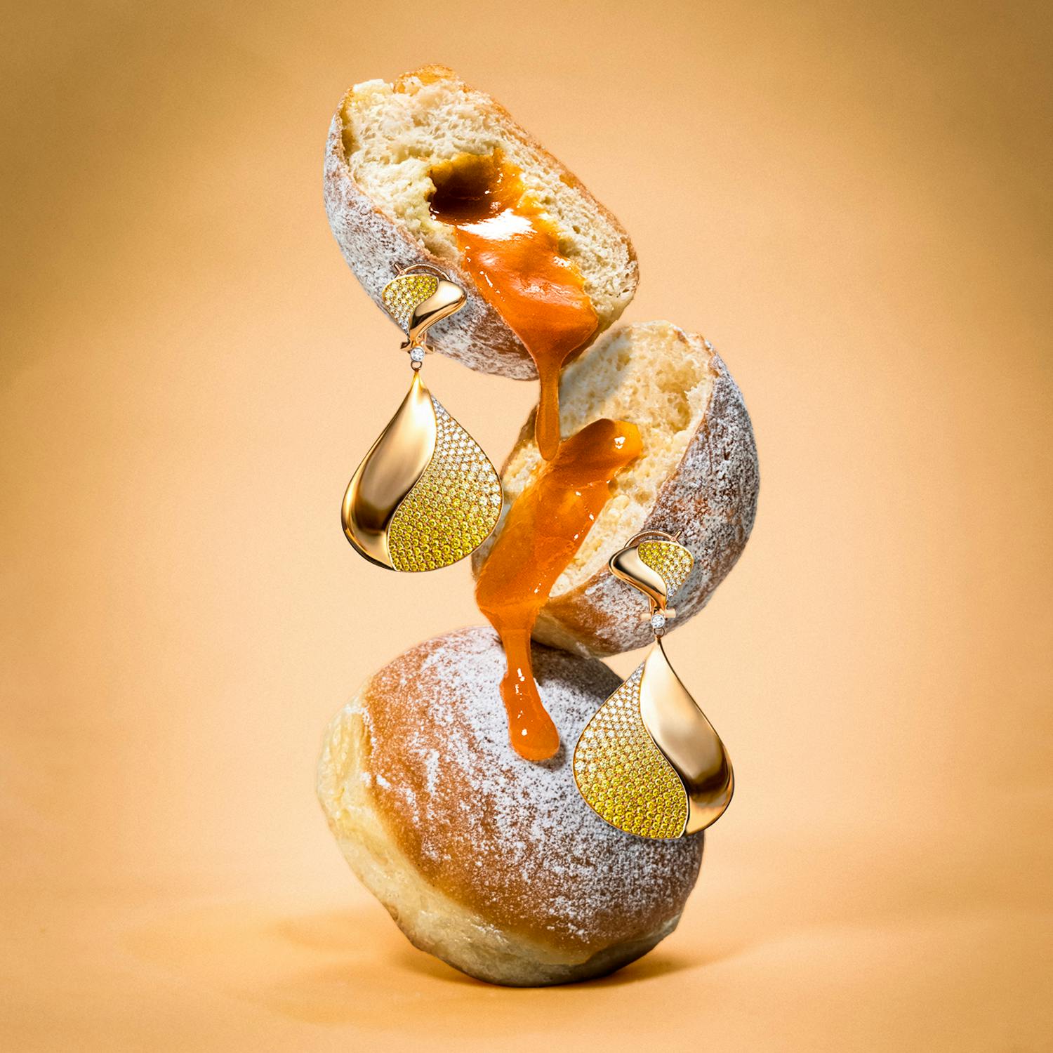 Die "Harfe IV giallo" Ohrringe sind aus 18 Karat Gelbgold gefertigt und mit 388 weißen und gelben Diamanten im Brillantschliff von insgesamt 4,90 Carat besetzt. „Harfe“, das deutsche Wort für das Musikinstrument, dient als Inspiration für das Design. Fließende Linien und anmutige Kurven spiegeln die Eleganz der Harfe wider, während das feine Pavé die harmonische und bezaubernde Form des Instruments in Bewegung einfängt.