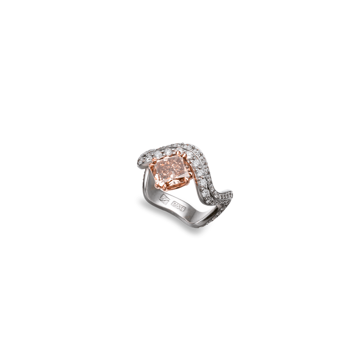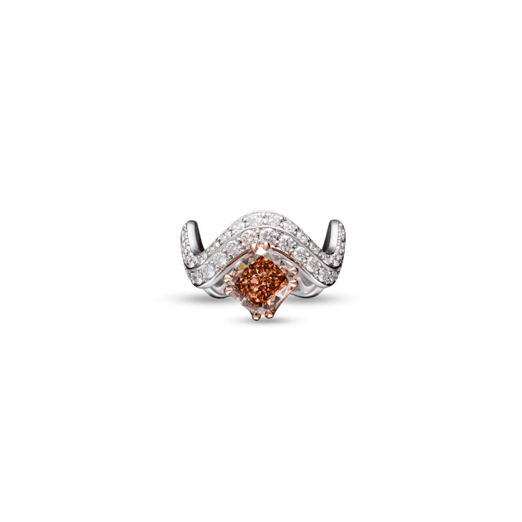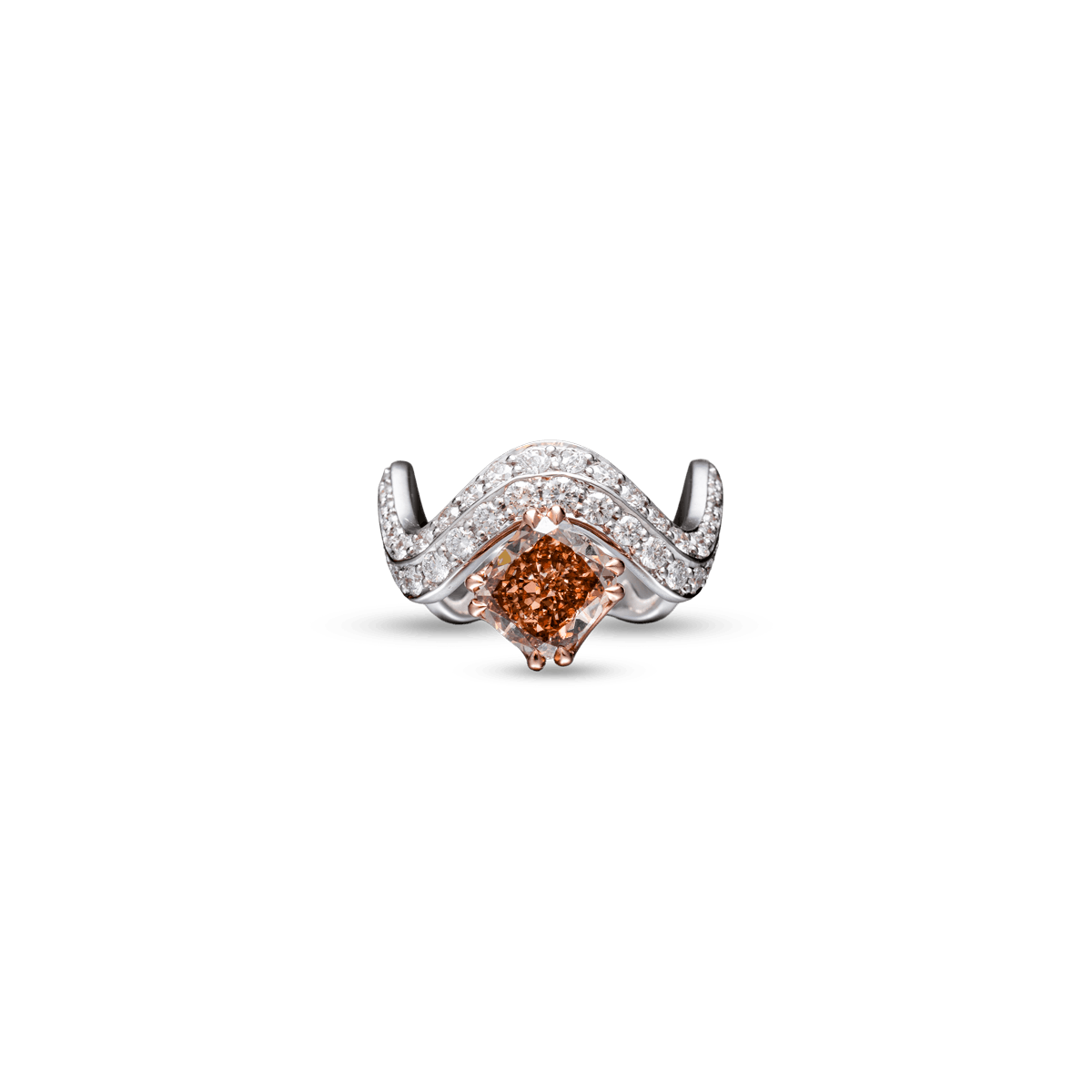 Der "Lamer" Ring ist handgearbeitet in 18 Karat Weißgold und ist besetzt mit 82 Diamanten im Brillant-Schliff zu insgesamt 1,44 Carat sowie einem braunen Diamanten zu 2,12 Carat.