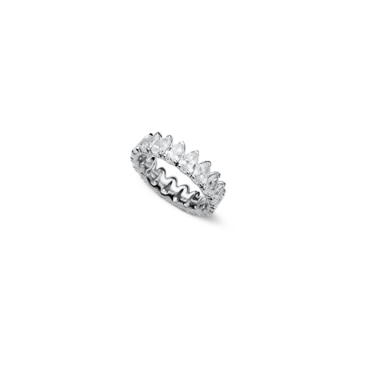 Der "Memory pear 4.60" Ring ist gearbeitet in 18 Karat Weißgold und ist besetzt mit Diamanten im Tropfen-Schliff zu insgesamt 4,60 Carat.