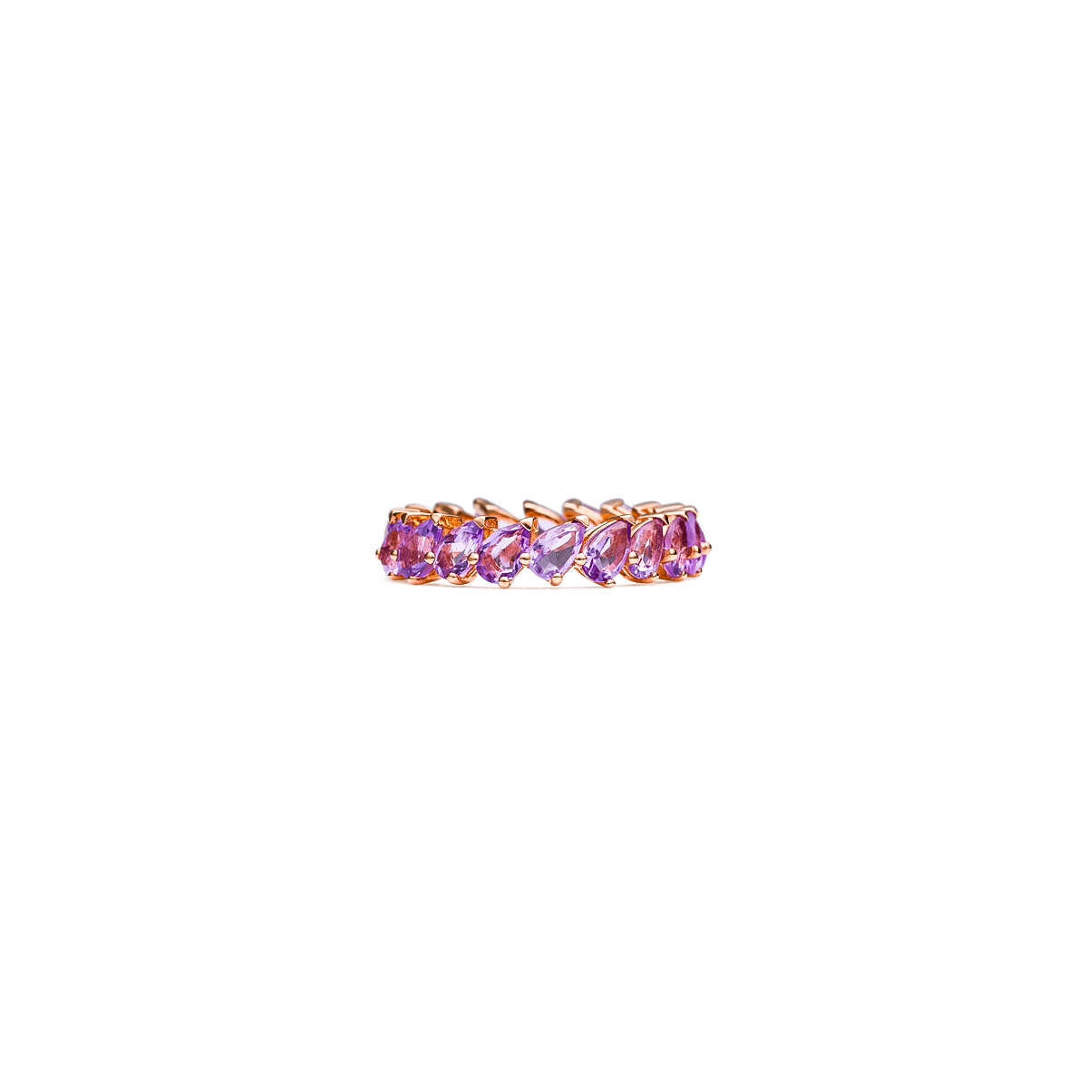 Der "Memory pear rosa" Ring ist gearbeitet in 18 Karat Roségold und ist besetzt mit lavendel farbigen Amethysten im Tropfen-Schliff zu insgesamt 3,78 Carat.
