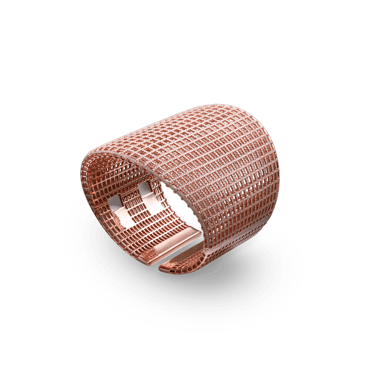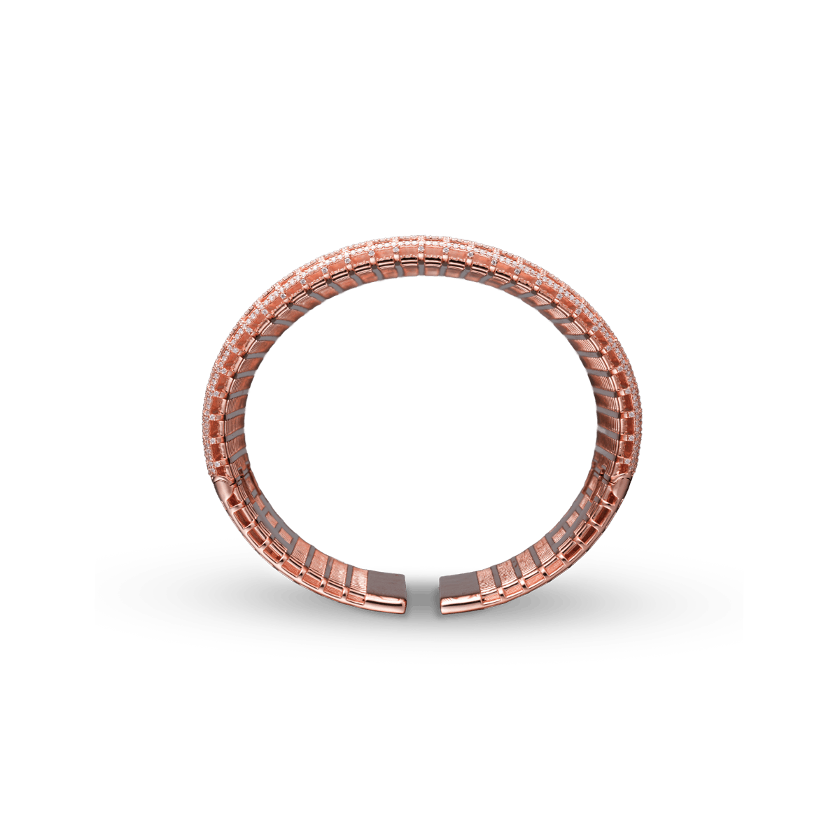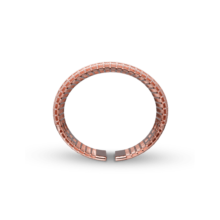 The ‘Lattice’ bangle is crafted in 18-karat rose gold and set with brilliant-shaped diamonds totalling 16.07 carats.