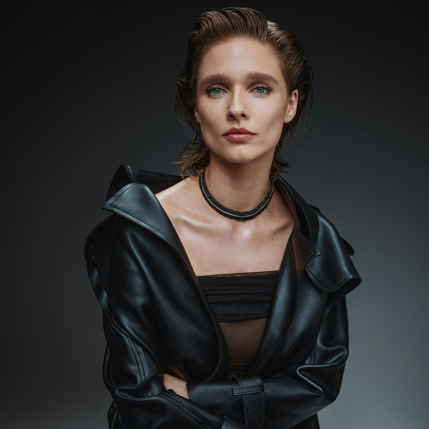 The "Nox" necklace is crafted in 18-karat white gold and is set with blackened diamonds totalling 14.04 carats and brilliant-shaped diamonds totalling 3.09 carats.