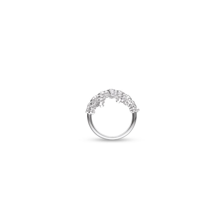 The "Caelora I Blanc" ring is crafted in 14 karat white gold and set with brilliant-shape diamonds totaling 1.85 carats.