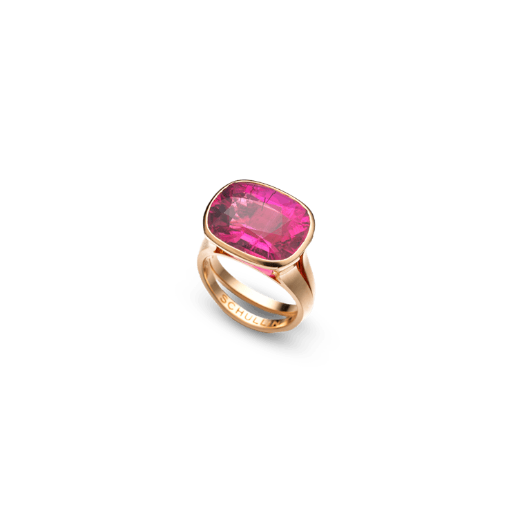 The "Encirra Rosa" ring is crafted in 18 karat rose gold and set with a rubellite totaling 11.08 carats.