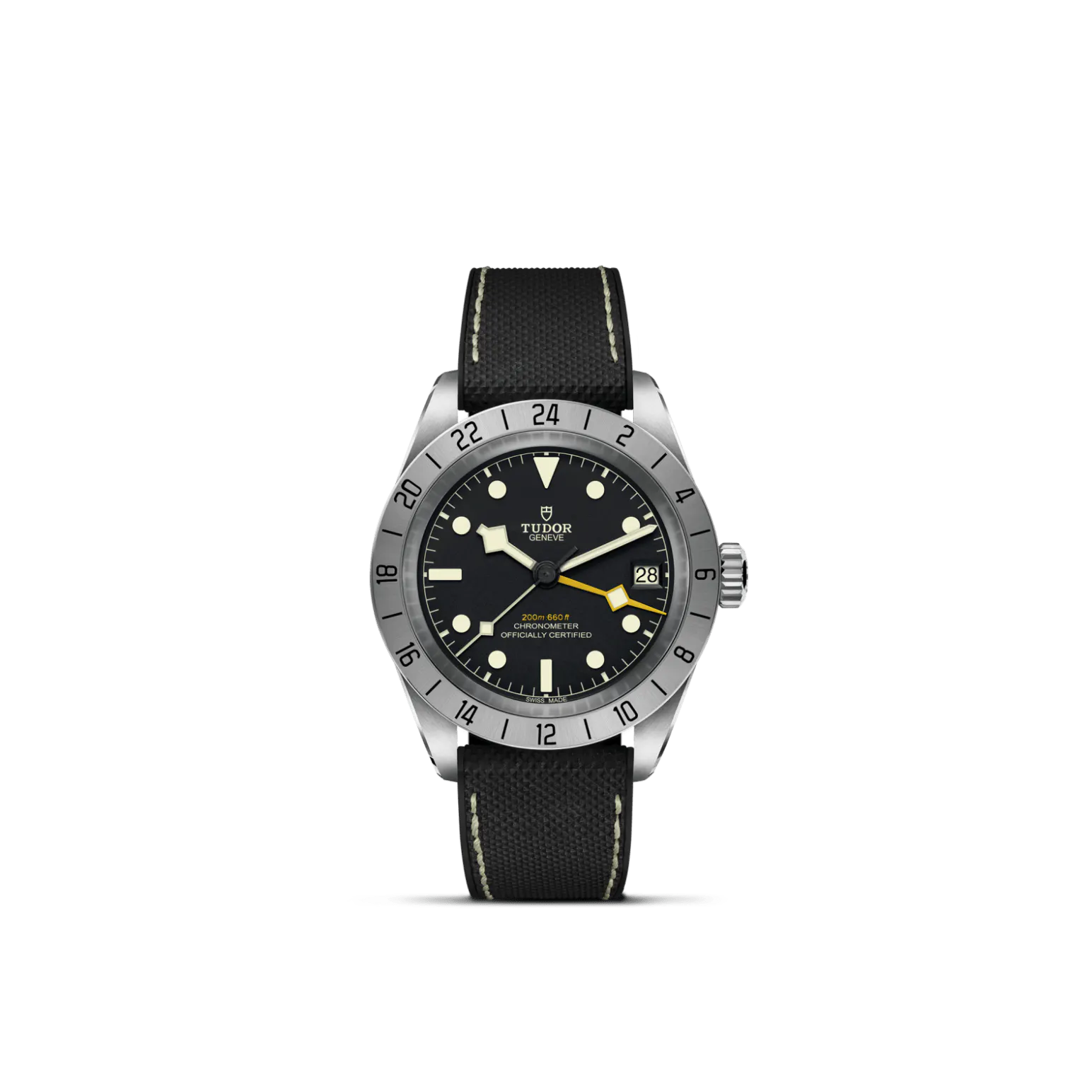 39mm steel case, Hybrid rubber and leather strap